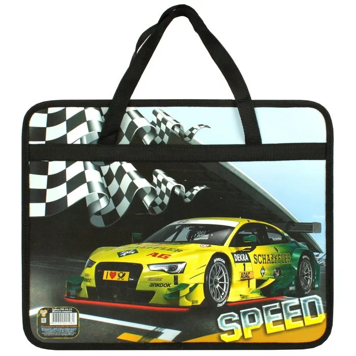 Папка детская с ручками А4 пласт. с рисунком на молнии Желтая машина ПМ-А4-25