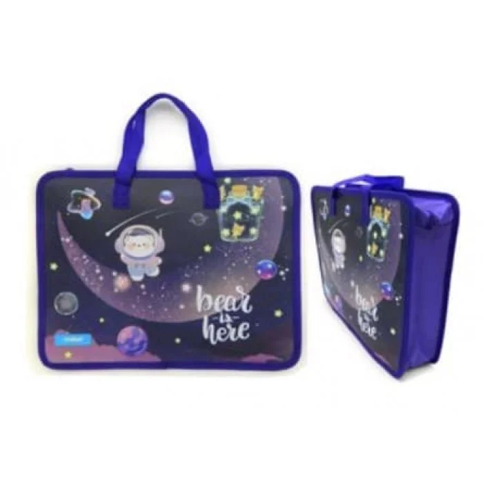 Папка для творчества А4 с ткан. ручками CJ-8094 "Мишка в космосе" пластиковая, молния сверху, фиолетовая с рисунком (1/120/240) 319587
