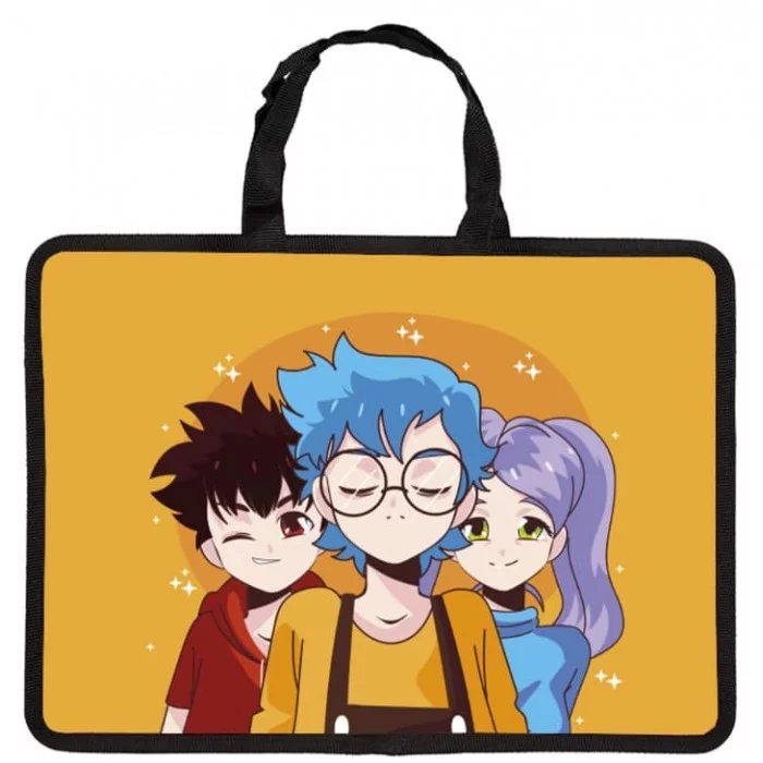 Папка А4 на молнии с ручками (340х250х80 мм) 1-секция. Пластик матовый, полноцветная печать. Ручки и торцевая часть - текстиль