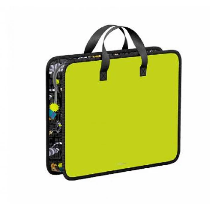 Папка для творчества формата A4+ из высококачественного пластика с элементами 100% полиэстера. Предназначена для переноски изделий и аксессуаров для творчества. Имеет одно большое отделение с расширением из ткани. Закрывается на молнию с мягким ходом. Для комфортной переноски ручки папки выполнены из прочной стропы. Цвет папки - желтый, цвет текстильной вставки - паттерн. Размер - 333х268х90мм. Толщина пластика - 0.6мм.