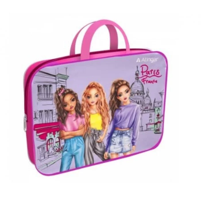 Папка с ручками 1 отделение, А4 260х340х80 мм, Alingar, ПВХ, ручки тесьма, дизайн с одной стороны, молния сверху, внутр. карман, "Модные девчонки" AL11401