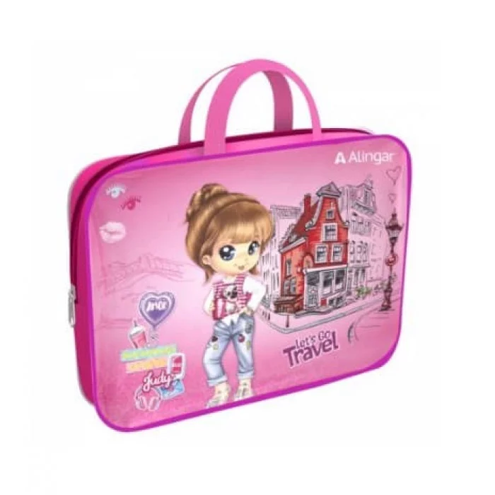 Папка с ручками 1 отделение, А4 260х340х80 мм, Alingar, ПВХ, ручки тесьма, дизайн с одной стороны, молния сверху, внутр. карм, "Юная путешественница" AL11397