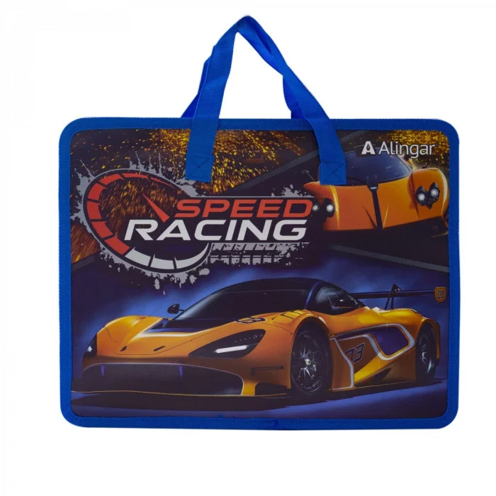 Папка с ручками 1 отделение, А4 265х335х90мм, Alingar, пластик, ручки тесьма, дизайн с двух сторон, молния сверху, "Sportcars" AL10453