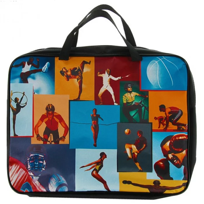 Папка с ручками, А4, ткань, твердое дно, молния сверху, широкая, "Виды спорта", ПШ-11, ш/к78788