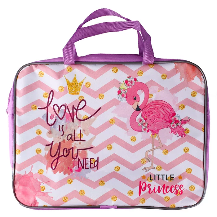 Папка школьника А4 с ручками + твёрдое дно Маленький фламинго печать на ткани ПШ-11