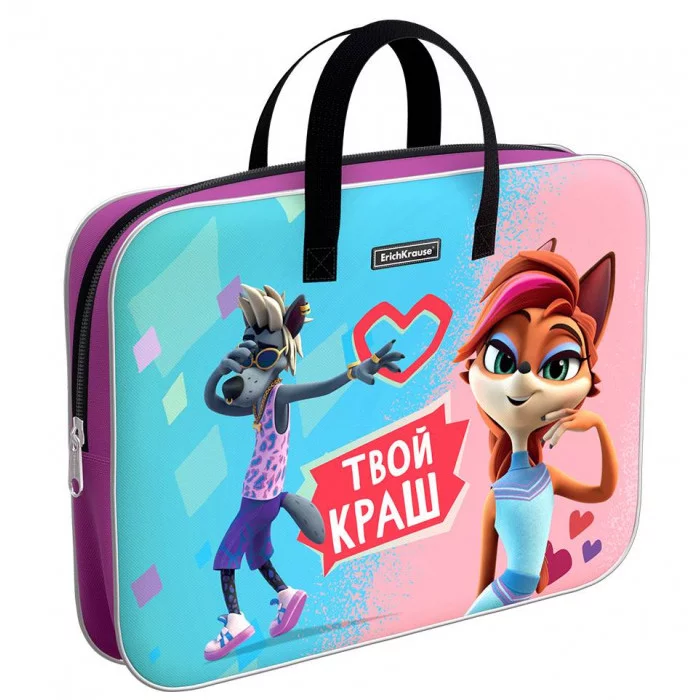 Папка текстильная на молнии ErichKrause с ручками Ну, погоди! Каникулы , A4+ 62568