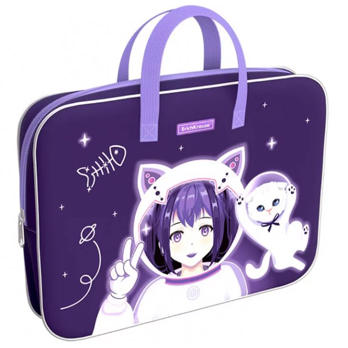Папка текстильная на молнии ErichKrause с ручками Space Anime, A4+ 59921