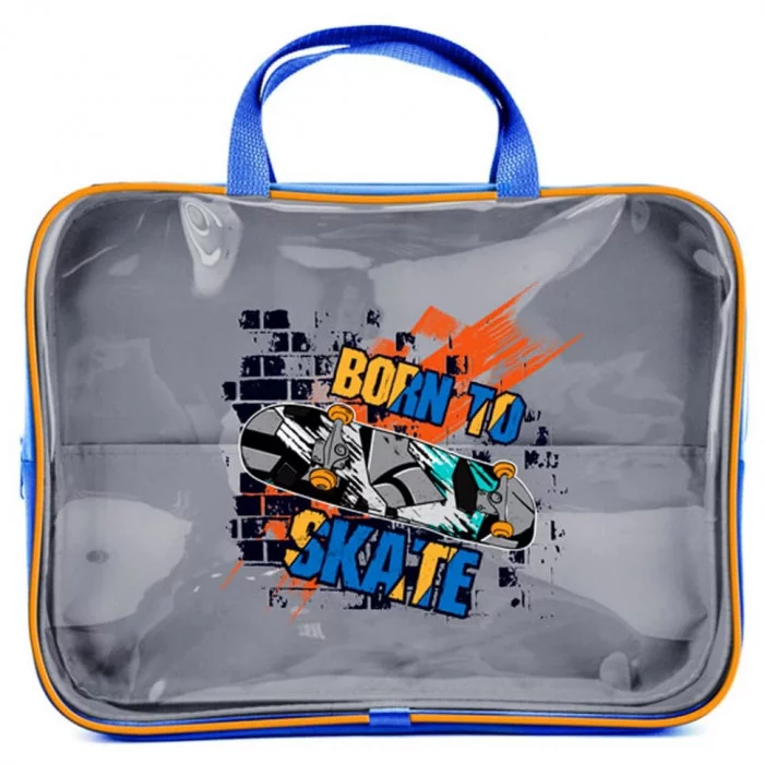 ПМД 2-84 Born to skate - папка менеджера А4 с ручкой, прозрачный полимер, дизайн, 350х265x40 мм