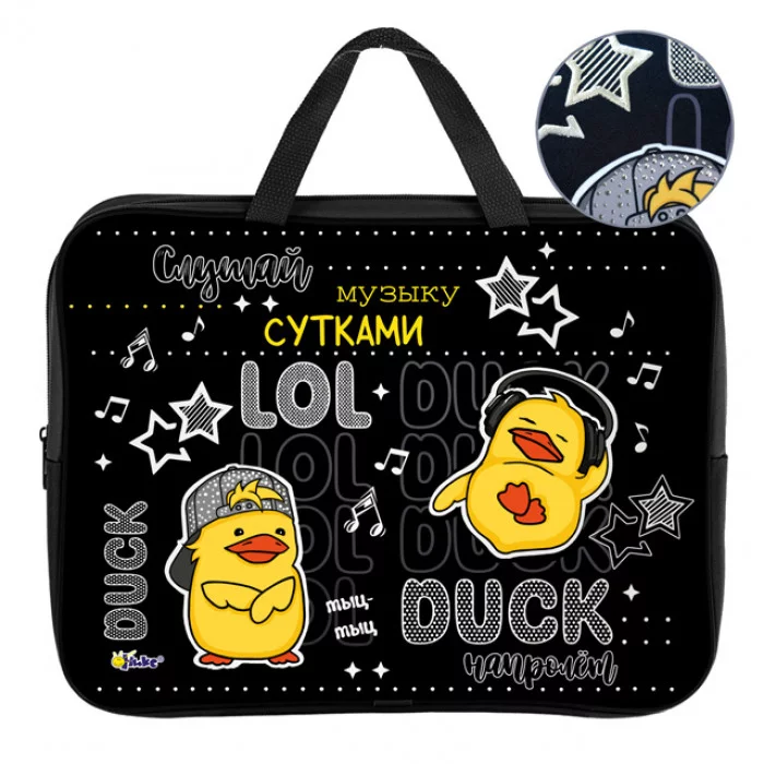 ПМД 4-22 Утки - папка менеджера А4(ручка - тесьма), п/э с диз.фольга, широкая боковинка, 350х265x80мм
