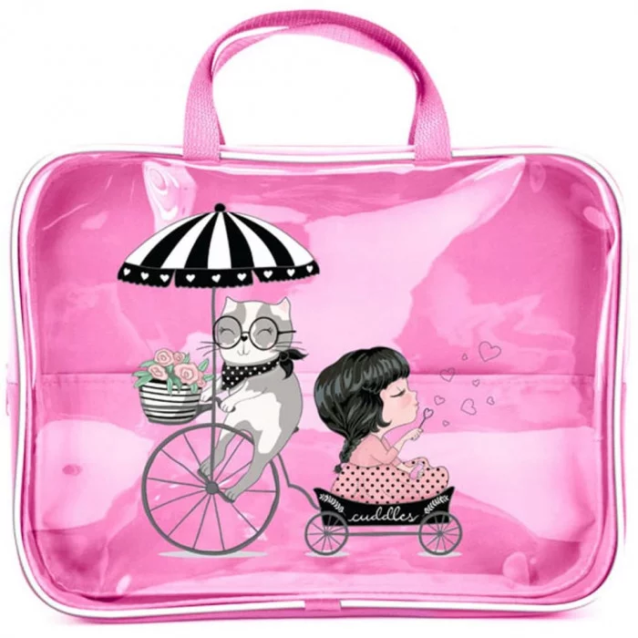 ПМД 4-84 Девочка и котик - папка менеджера А4 с ручкой, прозрачный полимер, дизайн, 350х265x80мм