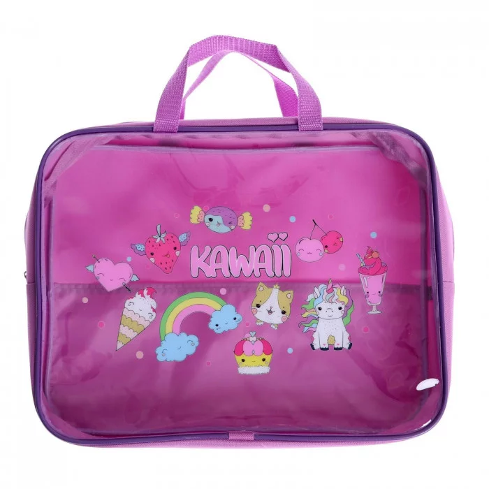 ПМД 4-84 Каваи рисунки - папка менеджера А4 с ручкой, прозрачный полимер, дизайн, 350х265x80мм