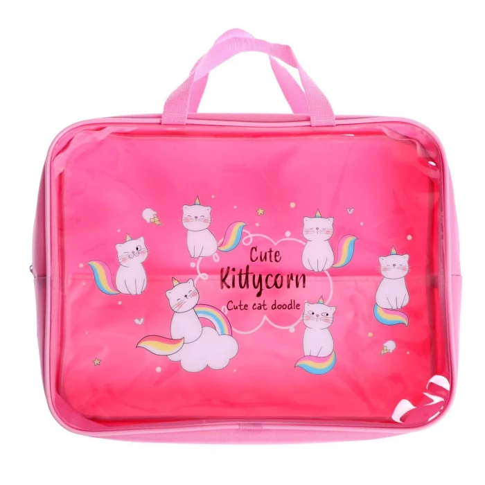 ПМД 4-84 Киттикорн - папка менеджера А4 с ручкой, прозрачный полимер, дизайн, 350х265x80мм
