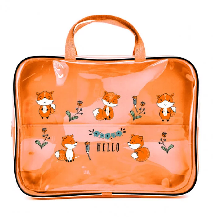 ПМД 4-84 Милые лисята - папка менеджера А4 с ручкой, прозрачный полимер, дизайн, 350х265x80мм
