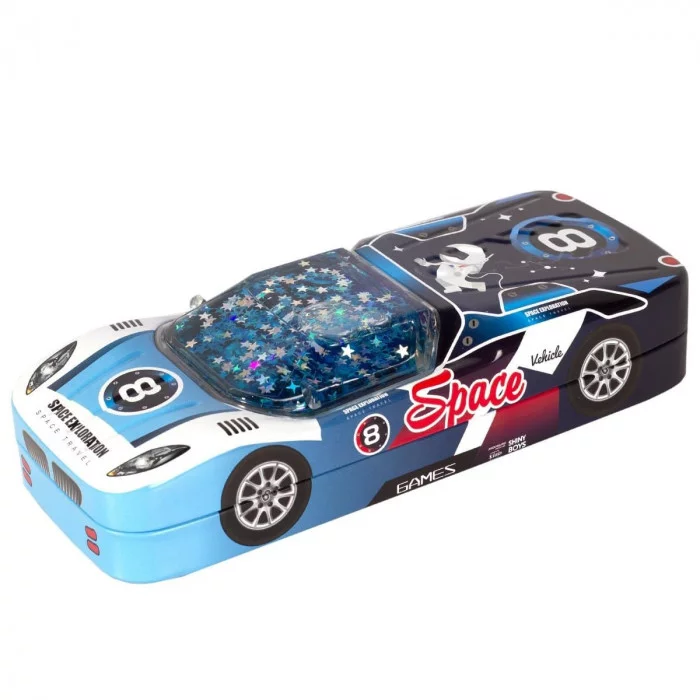 Пенал металлический машина 2 отделения Alingar, таблица умножения, звездочки в жидкости, 80 х 200 мм, "space vehicle", синий AL8618/1