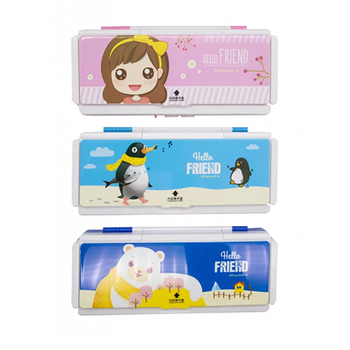 Пенал CK-15 "Hello, friend" пластик, короб с кодовым замком, клапаном для ручек, цвета ассорти, в ПВХ- пакете №35102 (1/1/96) 319613