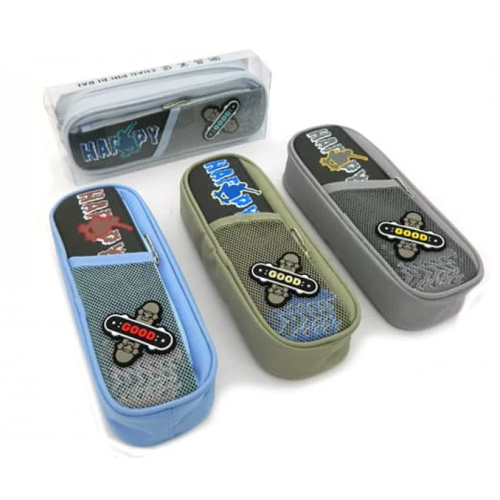 Пенал DA-212/CY-155 "Скейтер" овальный, текстиль, с наружным карманом на молнии, цвета ассорти, в упаковке ПВХ (1/12/288) 326422