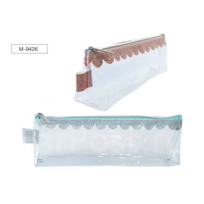 Пенал-косметичка DEW M, 20,5х4,5х7 см, на молнии, ПВХ, ассорти розовый/серый, ПВХ-упаковка M-9426*