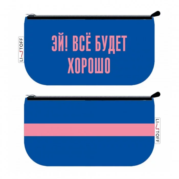 Пенал-косметичка на молнии (110х210) 1-секция. Ткань, полноцветная печать. Резинка - крепление на обложку. Инд.уп. OPP Все будет хорошо! ПМ0189
