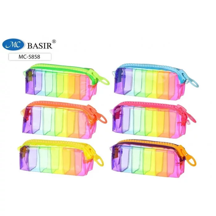 Пенал-косметичка: прозрачный, цветной /ассорти/, материал ПВХ, с протекторной молнией, размер 19, 5*8