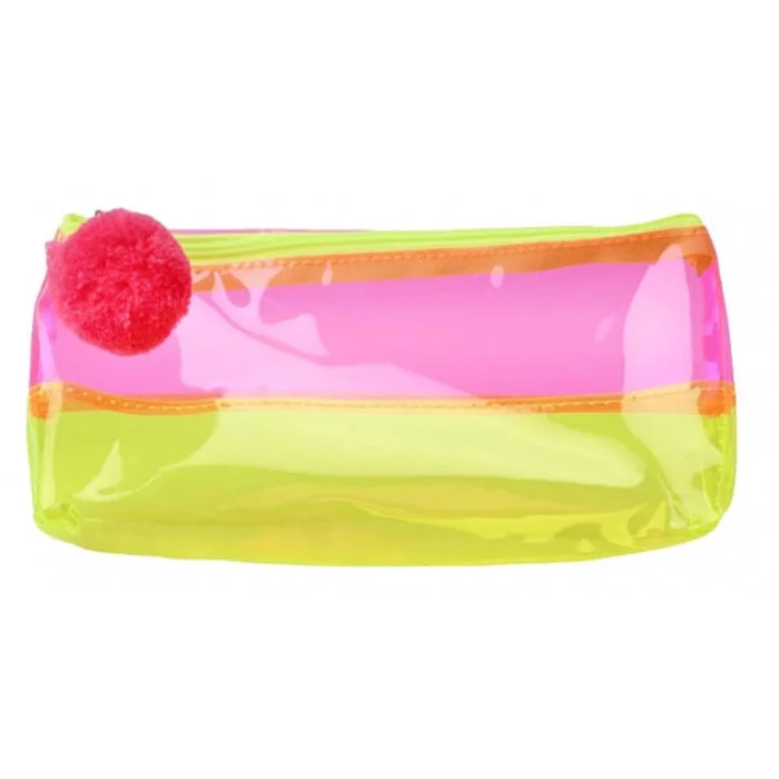 Пенал-косметичка с бубоном ЖЕЛТЫЙ И РОЗОВЫЙ (ПМ-6283) прозрачный пластик ПМ-6283