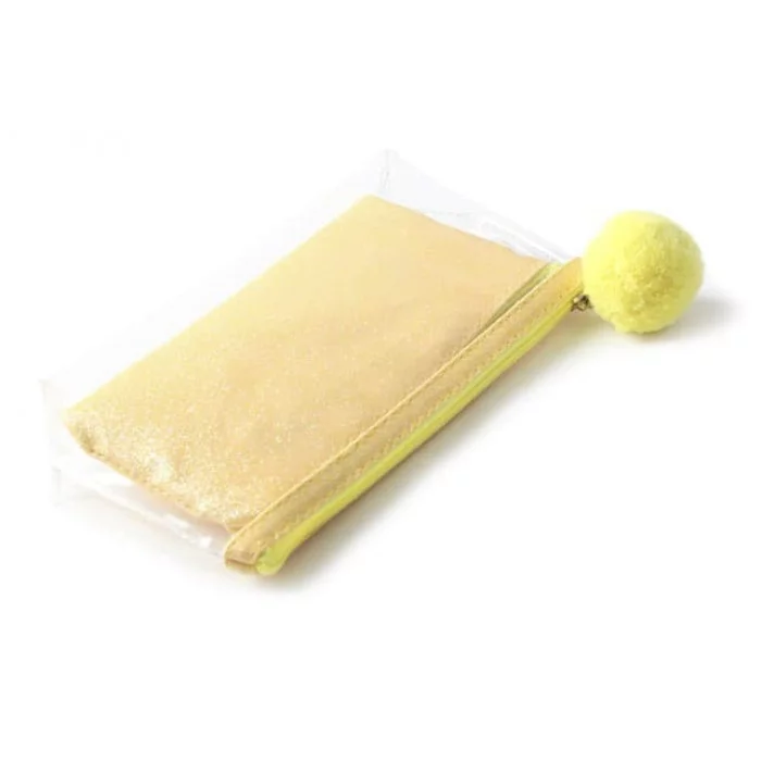 Модный пенал-косметичка в косметичке придется по душе всем девушкам! Он выполнен из ПВХ, надежно защищающего содержимое пенала. Модель оснащена прочной легко застегивающейся молнией с фигурным бегунком - жёлтым помпоном. Пенал вмещает все необходимые канцелярские принадлежности и нужные мелочи. Выполнен в жёлтом цвете с блёстками. Поставляется без наполнения.