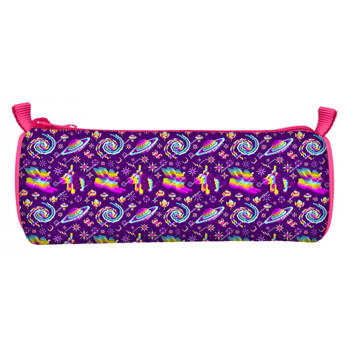Пенал-тубус 1 секц. круглый Schoolformat БЕЗУМНЫЙ СТИЛЬ 210х65х65 полиэстер молния фуксия 237046