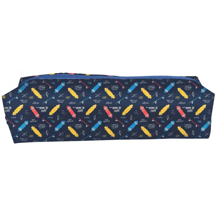 Пенал-тубус 1 секц. прямоуг. Schoolformat СКЕЙТБОРД 195х45х45 полиэстер молния синий 237053