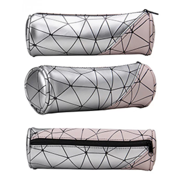 Пенал- тубус СЕРЕБРО+РОЗОВАЯ ПАУТИНА (ПН-3599) кожзам ПН-3599