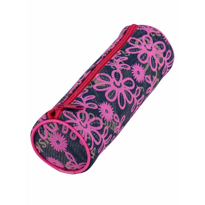 Пенал- тубус ЦВЕТОЧКИ, ДЖИНСОВЫЙ, МАЛИНОВЫЙ (ПН-6830) комбинир. материал