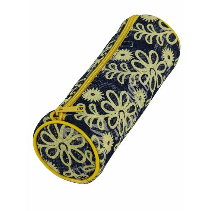Пенал- тубус ЦВЕТОЧКИ, ДЖИНСОВЫЙ, ЖЕЛТЫЙ (ПН-6829) комбинир. материал
