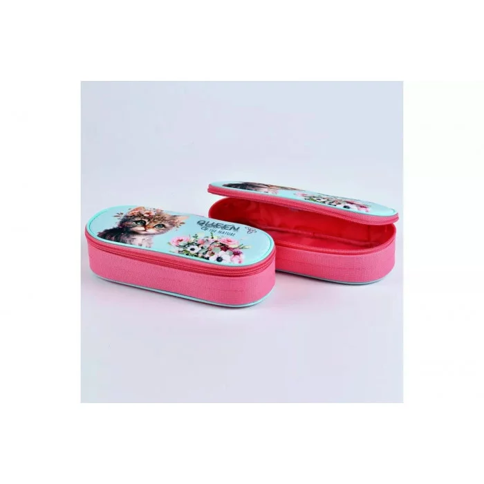 ПМК 22-20 Котёнок и цветы - пенал мягкий, корпусный, резинки на клапане, 210х85х50 мм