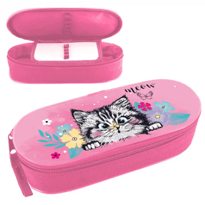 ПМК 24-20 Котёнок в цветочках - пенал мягкий с откидной планкой ПМК 24-20