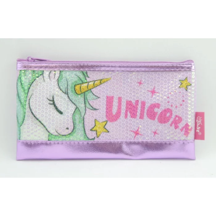ПМП 01-100 Милый единорог-пенал мягкий, дизайн на пайетках, кож/зам перламутровый 61090