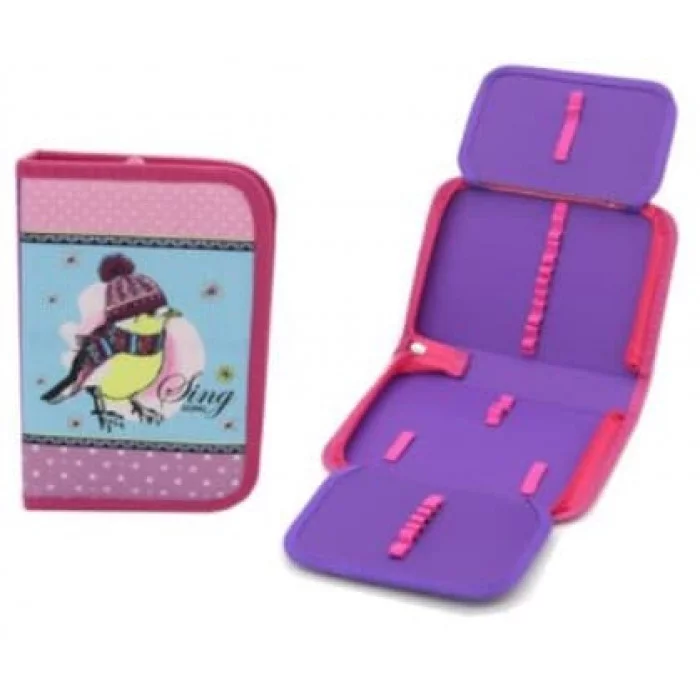 Пенал 1 отд. CP-68331 "Птичка в шапочке" с 2-мя створками, текстиль 21*14*4см, голубо-розовый (1/100) 323294