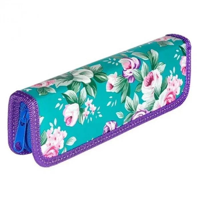 Пенал 1 отделение 205*55 экокожа "Розы на бирюзе" КАНЦБУРГ 5п13 065647