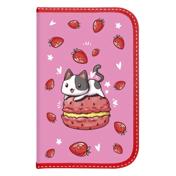 Пенал 1 секц. бол. Schoolformat STRAWBERRY CAT 190х90х25 картон, полиэстер молния роз. 237038