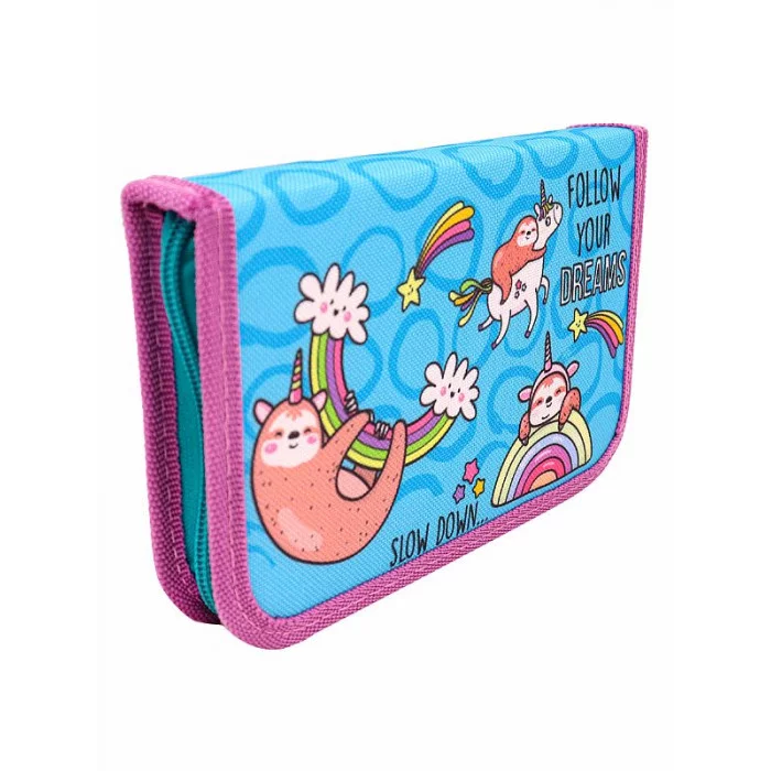 Пенал 1-секц, печать на ткани, большой ЛЕНИВЦЫ И ЕДИНОРОГ (ПН-1207) (190х115)