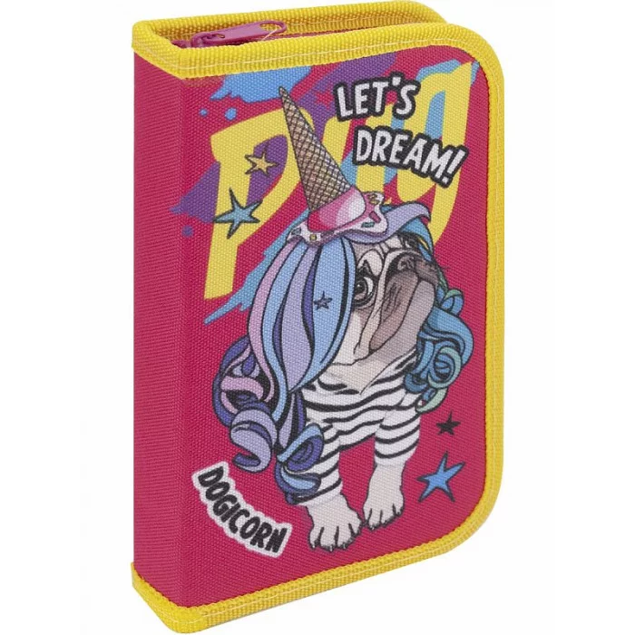 Пенал 1-секц, печать на ткани, большой НАРЯДНЫЙ МОПС (ПН-8766) (190х115)