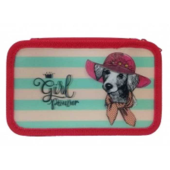 Пенал 2-секц, большой СОБАКА В КРАСНОЙ ШЛЯПКЕ (ПН-2011) 190х115, 3D печать ПН-2011