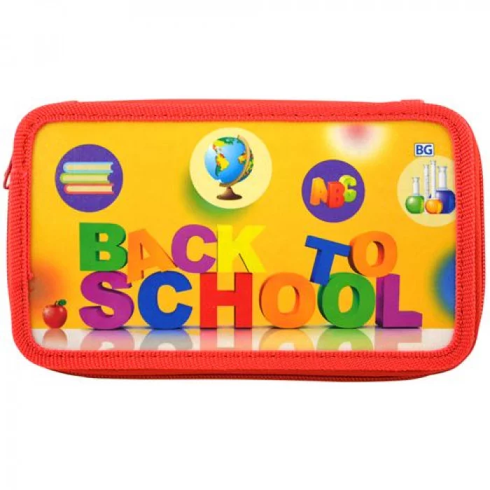 Пенал BG большой 190х110 мм 2 отделения на молнии "Школьная пора" ламинированный