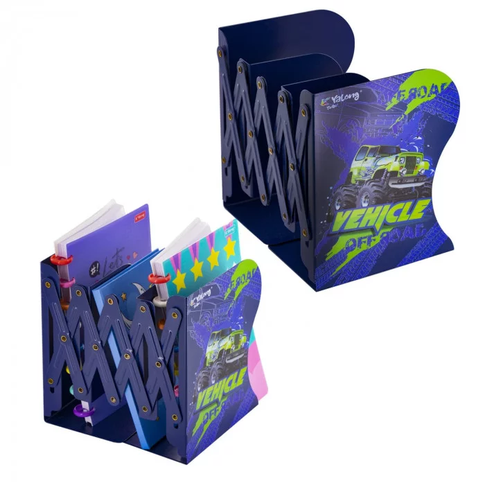 Подставка-держатель для книг раздвижная Yalong, 3 отделения, металл, "Машина", картон. уп. YL225905