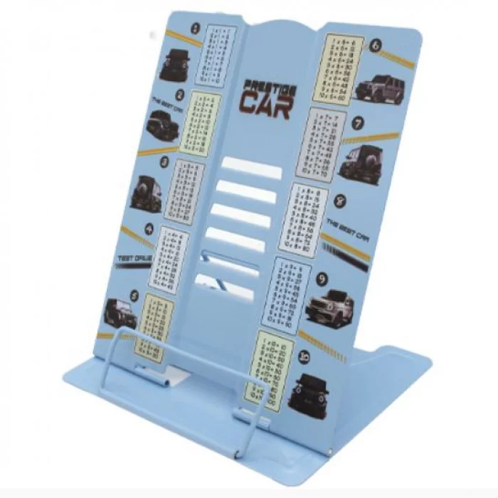 Подставка для книг CS-5027 "Внедорожник" металлическая 26х21см, голубая, с таблицей умножения, в ПВХ-пакете 324418