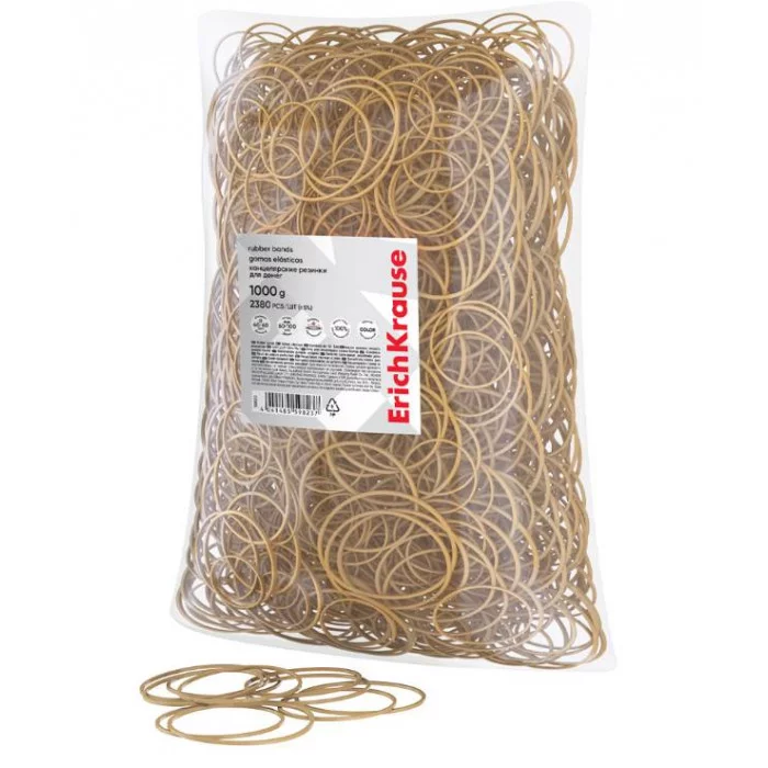 Канцелярские резинки для денег ErichKrause диаметр 40 мм, 60 мм/длина 60 мм, 100 мм, натур.цвет 59823