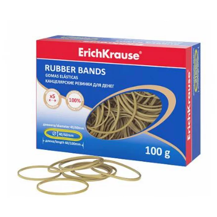 Канцелярские резинки для денег ErichKrause диаметр 40 мм, 60 мм/длина 60 мм, 100 мм, натур.цвет 59845