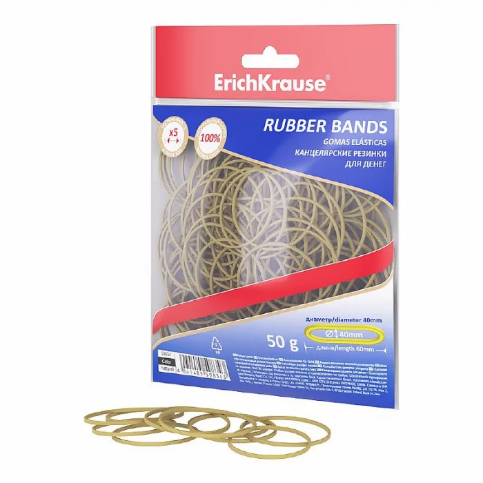 Канцелярские резинки для денег ErichKrause диаметр 40 мм/длина 60 мм, натур.цвет 59834