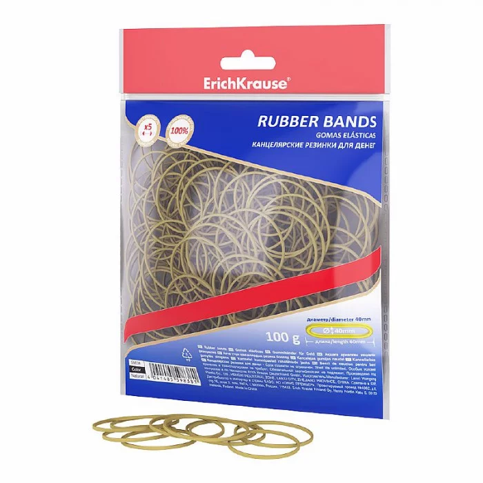 Канцелярские резинки для денег ErichKrause диаметр 40 мм/длина 60 мм, натур.цвет 59838