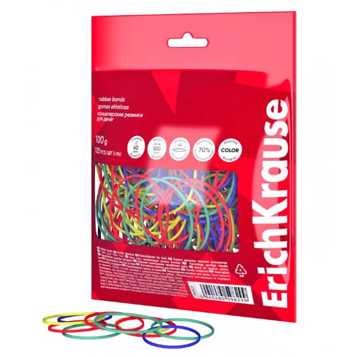 Канцелярские резинки для денег ErichKrause диаметр 60 мм/длина 100 мм, ассорти 59829