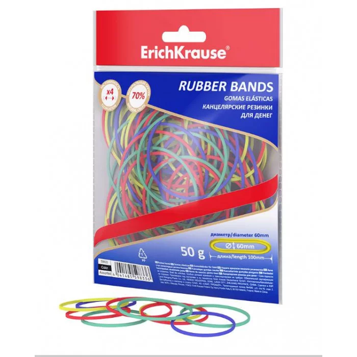 Канцелярские резинки для денег ErichKrause диаметр 60 мм/длина 100 мм, ассорти 59833