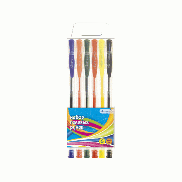 Набор ручек гелевых "Attomex" 06 стандартных цветов, d=0,5 мм, прозрачный корпус с металлическим наконечником, сменный стержень, в пластиковой коробке с подвесом
