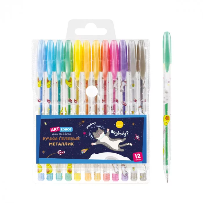 Набор гелевых ручек ArtSpace "Космические приключения" 12цв., 1, 0мм, металлик, ПВХ чехол 314530